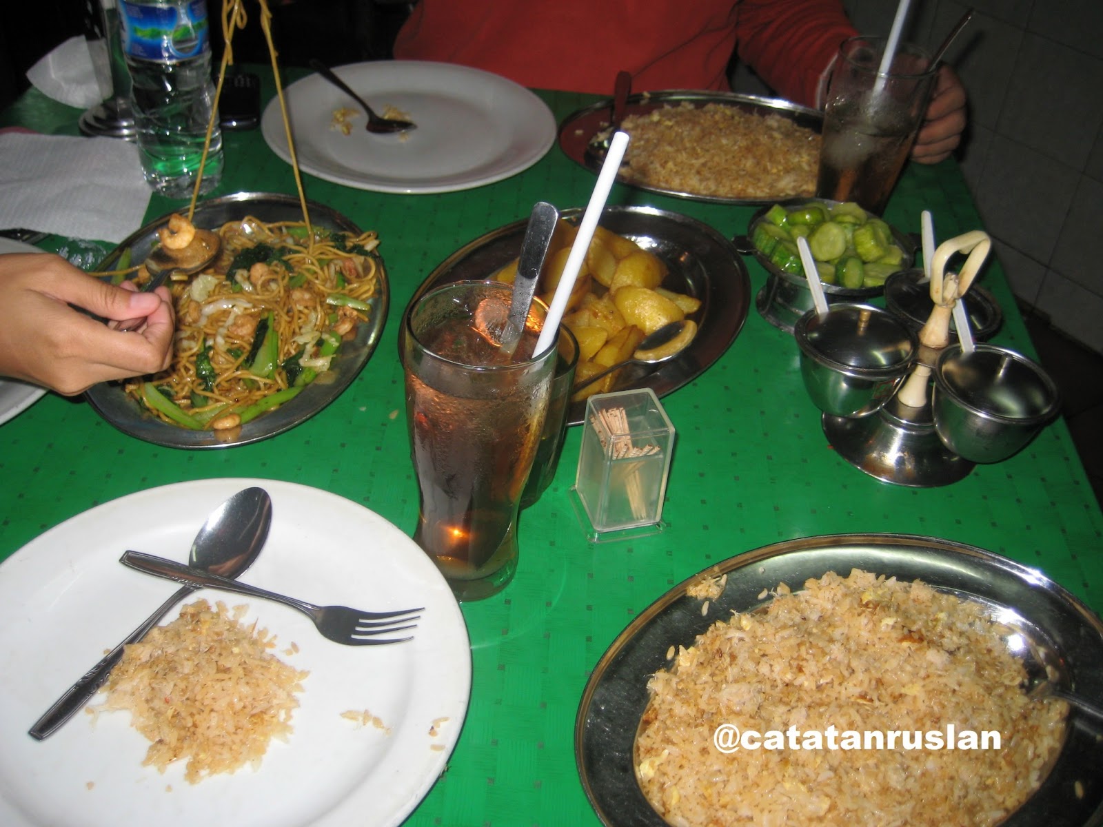 Akhirnya kami memesan nasi goreng kepiting, bakmi goreng udang dan satu lagi kentang goreng mentega. suasana restorannya bisa dikatakan benar-benar jadul, dari lagu-lagu yang diputar, pelayannya pun ga ada yang muda. Orang-orang yang datang kesana pun, rata-rata orang jadul, kecuali saya sih, hehe.